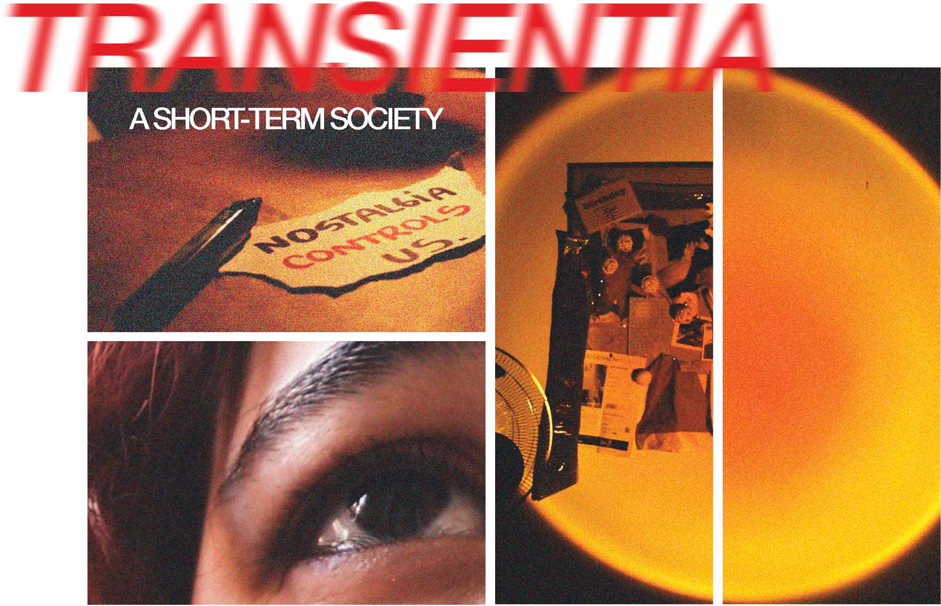 In the present world, nostalgia-driven consumerism has ignited a need to satisfy yearnings for the past, offering consumers just enough to buy but not enough to truly fulfill their cravings. This perpetual cycle has led to a society that consumes based on a constant yearning for the past, leaving it in a state of stagnation in both social and creative mediums. Through a speculative scenario set 20 years in the future, a society forced to live solely in the present emerges, devoid of disturbance from the past or future, as a means to move away from this yearning. This results in a short-term society where memories expire after just two weeks, aimed at eradicating nostalgic thoughts. This short-term lifestyle can be seen in various realms, including the design process. Design no longer prioritizes quality but rather speed, leading to a critique of the decline in well-thought-out design. The rush to think, design, and market lowers the quality of products, generating a society that no longer yearns for the past but instead craves fast innovation. Older generations have grown tired of the perpetual past that has been rained upon them. The incessant need producers have to reel the user in by using the past has started to ignite a stagnation in creativity and societal advancement. Conclusions have been reached that read along the lines of: “No innovation comes from constantly using the past.” Millennials, Gen X and Baby Boomers have all taken radical measures in 2044 to ban nostalgia and its triggers due to the societal negative tone that has been now implicated by older generations, who happen to be the major part of society.